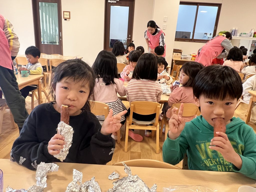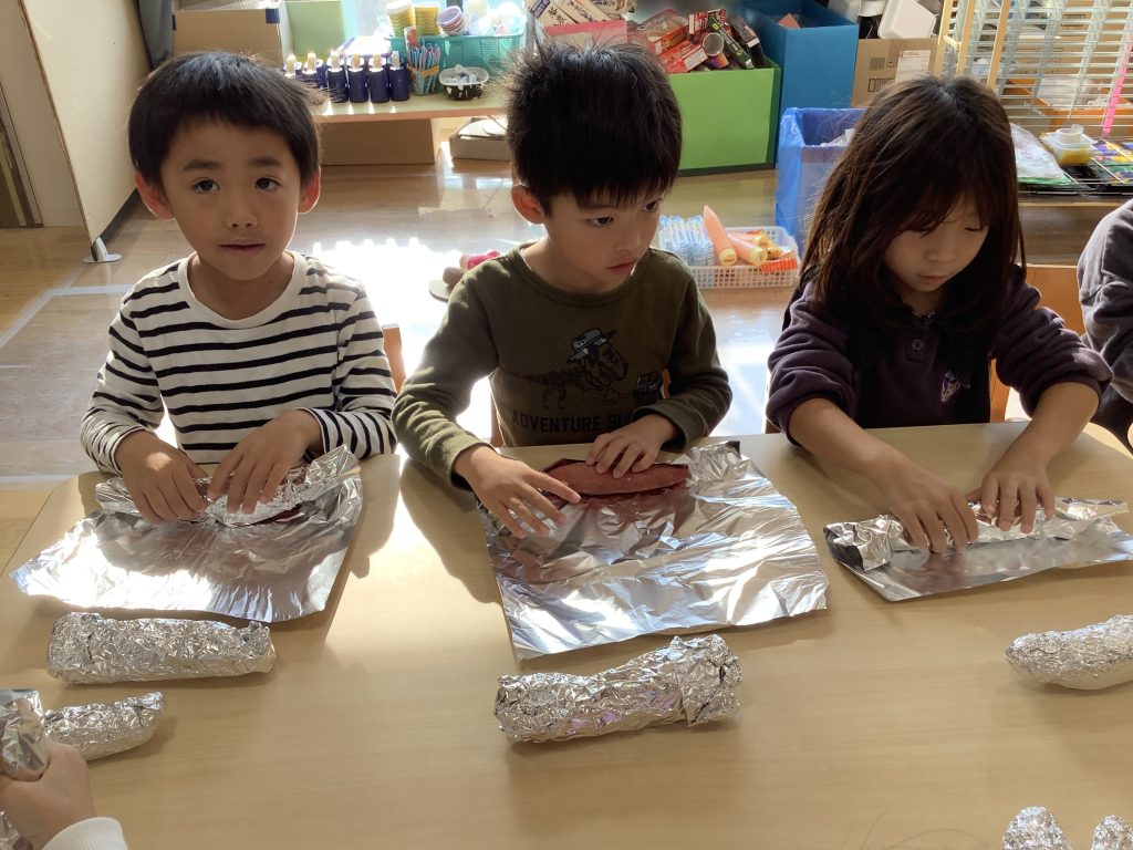 ぞう組・くま組では焼き芋の準備をしてくれました✨
