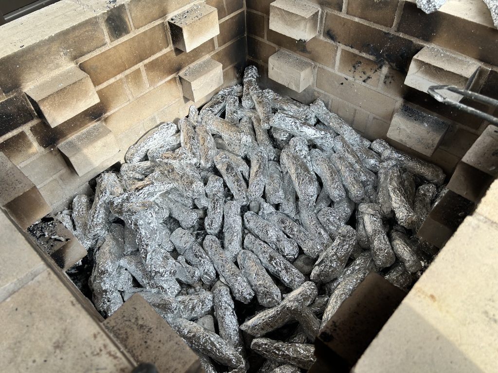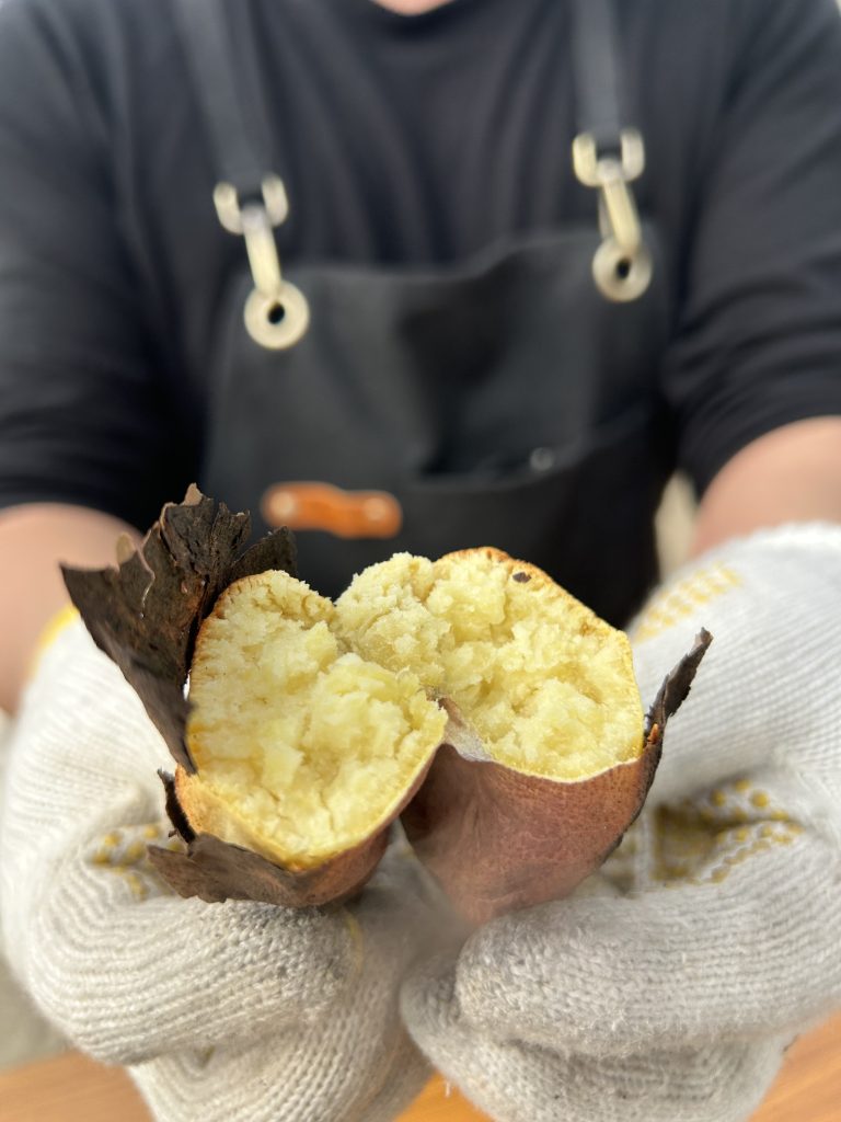 実際にお芋を焼くときは炎を落ち着かせてから、炭火でじっくり焼きます🍠