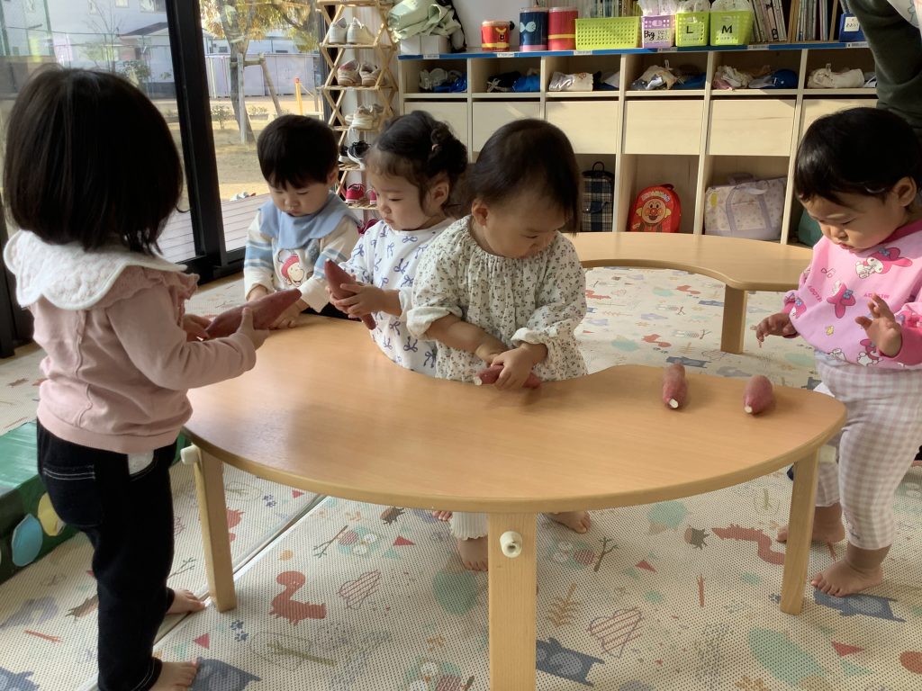 小さいクラスではさつま芋を見て触ってじっくり観察😊
