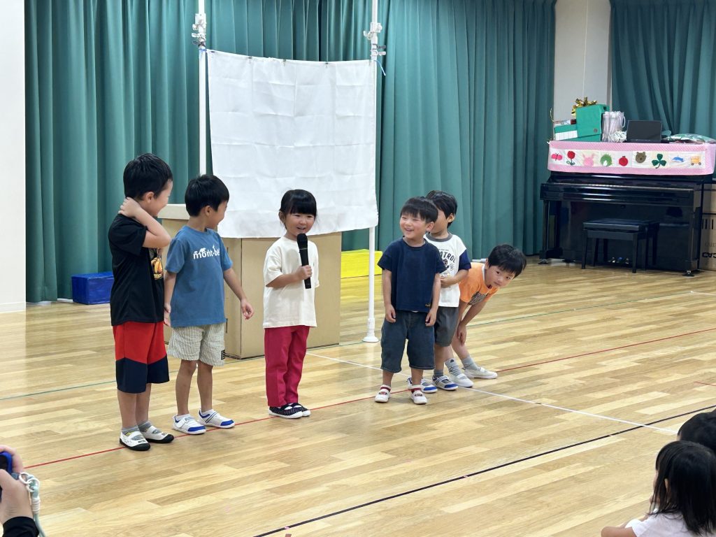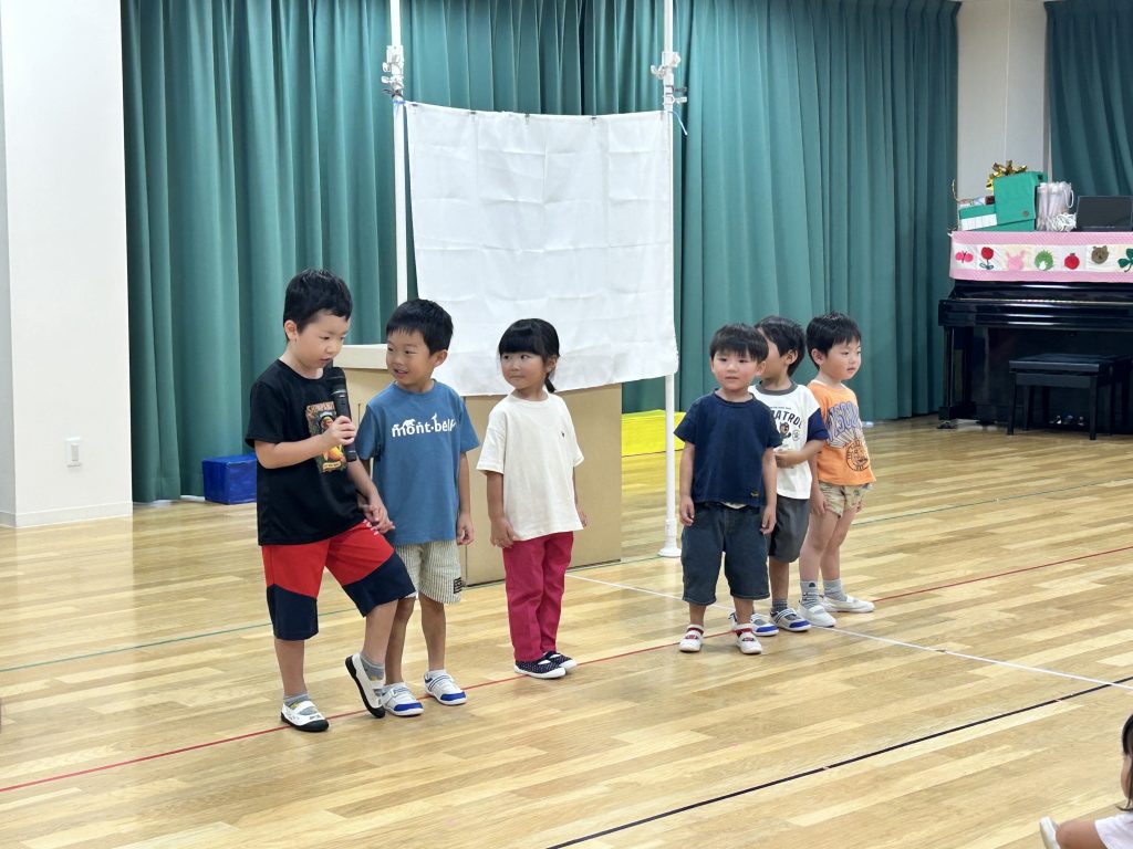 お誕生日のお友達に前に出てきてもらって他のお友達からの質問に答えてもらったよ~🎶
