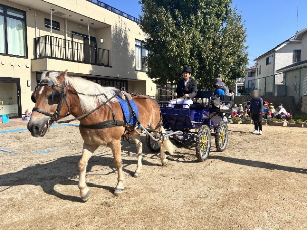 快晴の中、小さいクラスの子ども達は先生と一緒に馬車に✨✨