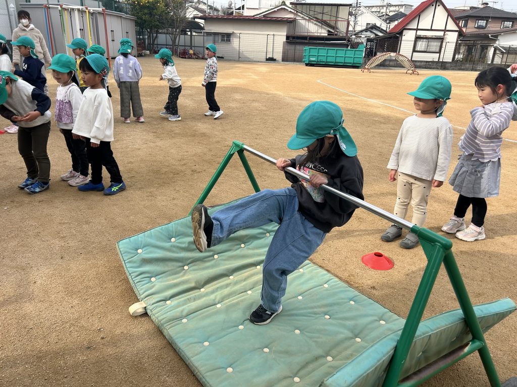 くま組は板を使って逆上がりの練習✨