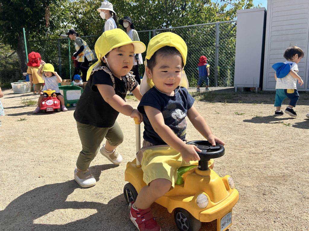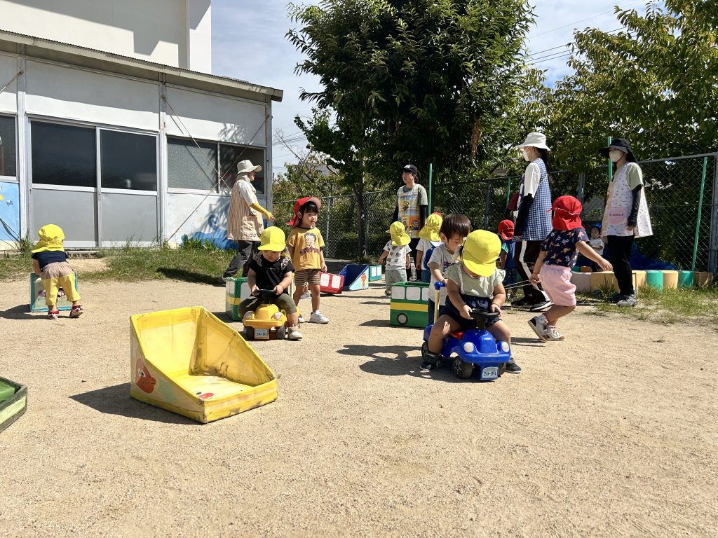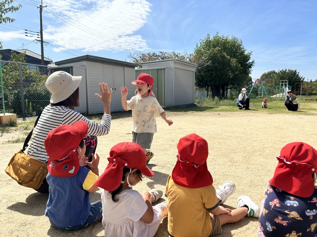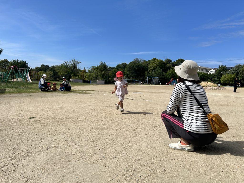 子ども達が遊んでいる横で幼稚園の子ども達が運動会の練習をしていて、「かっこいいねぇ🥰」と眺めたり🎶