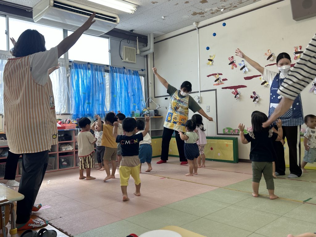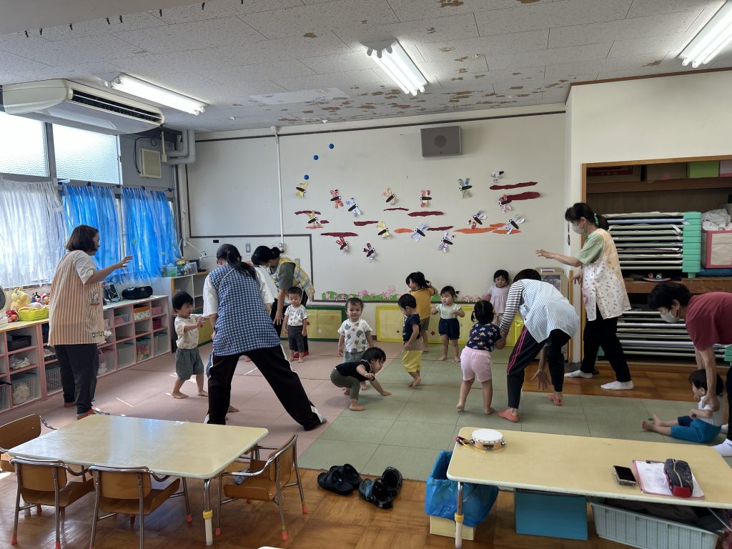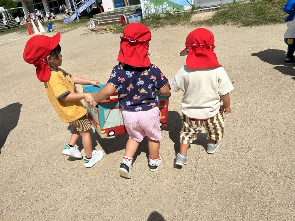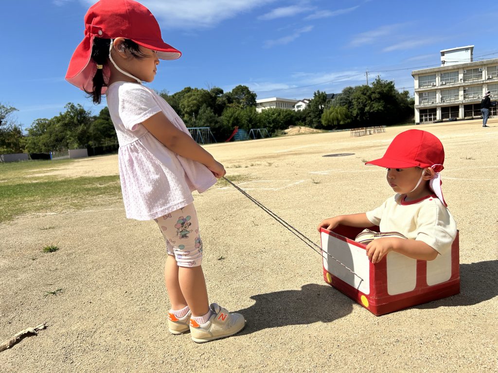 子ども達が遊んでいる横で幼稚園の子ども達が運動会の練習をしていて、「かっこいいねぇ🥰」と眺めたり🎶
