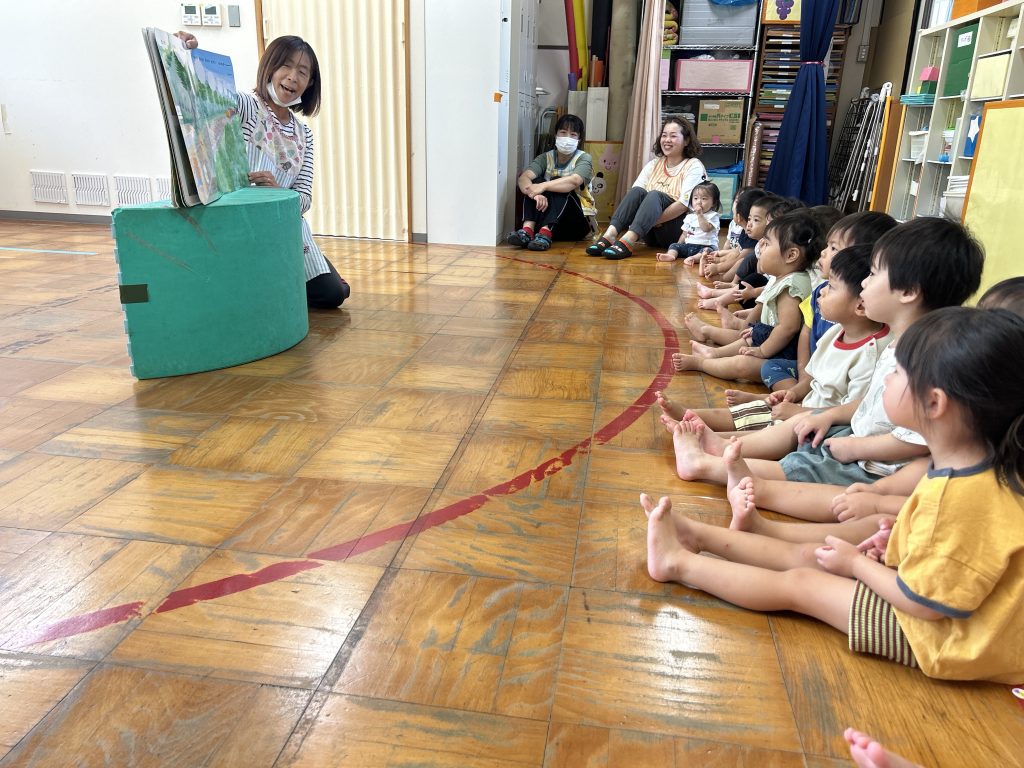 楽器あそびのあとは先生に絵本を読んでもらいながら一旦休憩😌