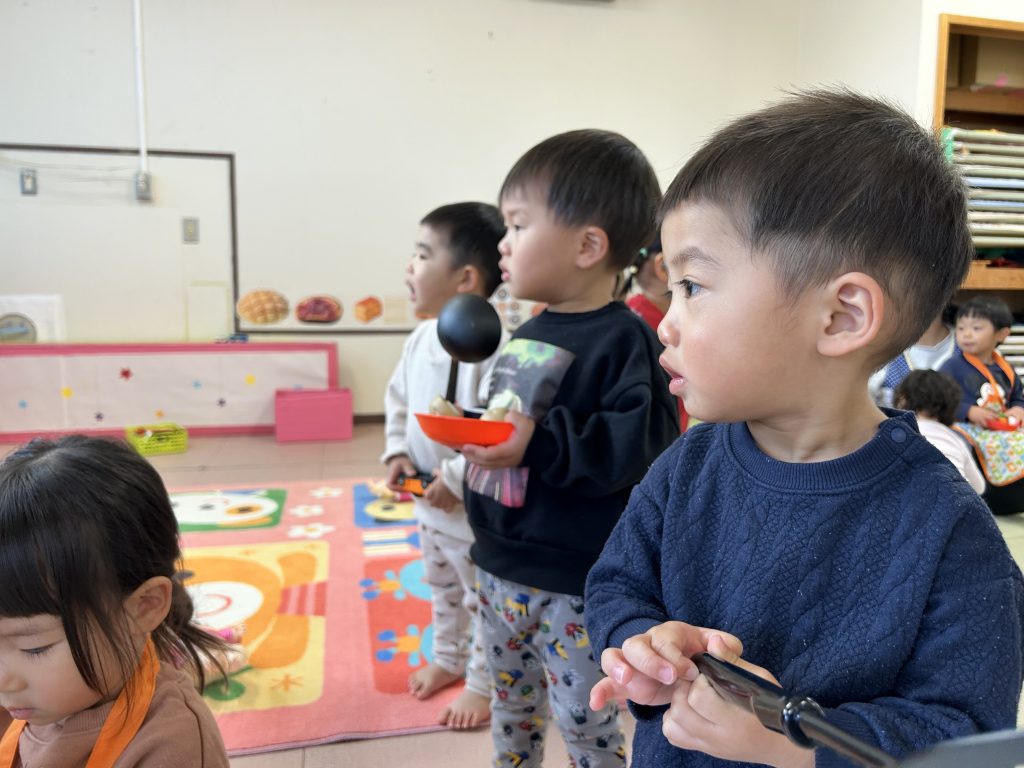 給食が待ちきれなくて泣き出してしまったお友達を見つめる三人😲