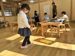 今日はくま組の様子😊 自分たちでくり抜いた黒い画用紙に カラフルなセロハンを切ったり貼ったり✂️ さあ🎶どんなものができあがるかな💕💕 太陽の光が入る窓に出来上がった作品を持っていくと・・・ 床にきれいに映し出されたのは […]